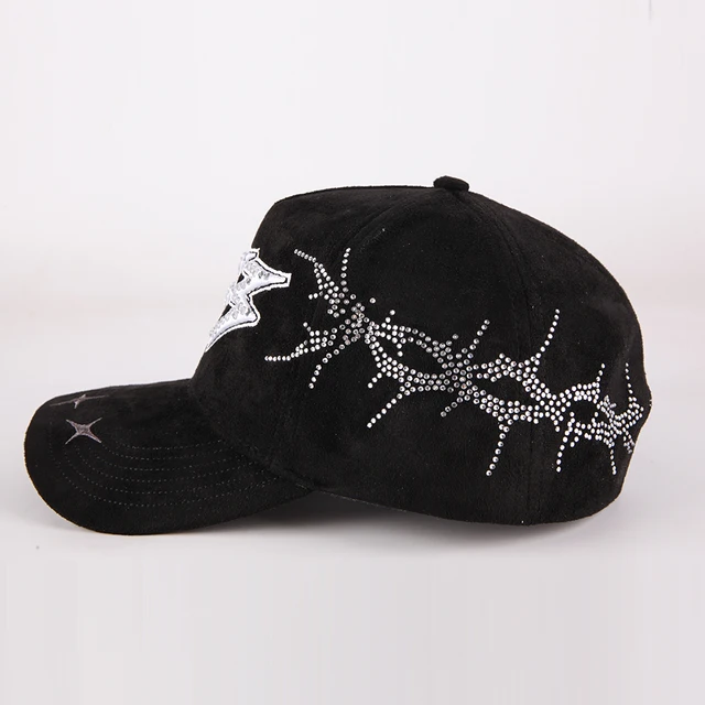 Wholesale Factory Custom Fashion High Quality Rhinestone Embroidered Satin Lined Suede Baseball Cap