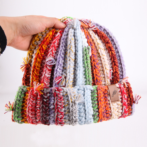 Cappello invernale all'ingrosso con teschio corto in maglia retrò da uomo con berretto Jacquard personalizzato Hip Hop uncinetto con logo personalizzato